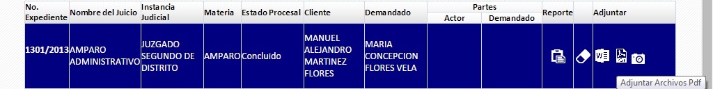 Para adjuntar Archivos de Tipo Word, Imagen y Pdf se opta por dar clic en cualquiera de los iconos de la columna Adjuntar del Expediente como se muestra en la imagen: