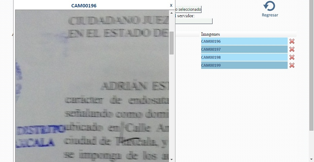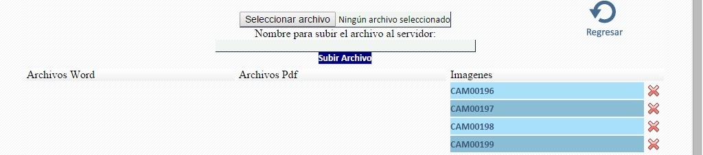 Muestra una pantalla donde seleccionamos el archivo en su formato, Word, Imagen ó Pdf a través del botón seleccionar archivo, posteriormente escribimos un nombre para el archivo o podemos dejar como el sistema lo asigne como se muestra en la imagen siguiente: